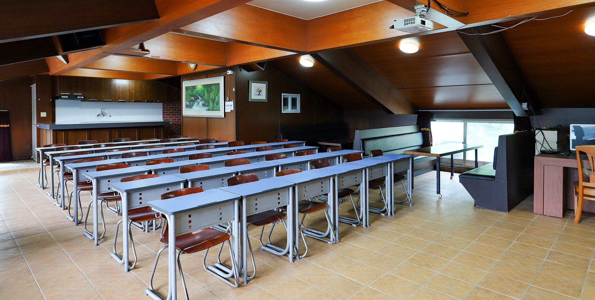 세미나,워크샵,동호회 모임 등 다양한 용무로 사용이 가능한 세미나실입니다.(노래방 가능) (빔, 스크린, 마이크 완비, 노래방 기계 완비) *사전 예약 필수 *종일대관, 시간당 대관 가능 *대관비 별도 문의