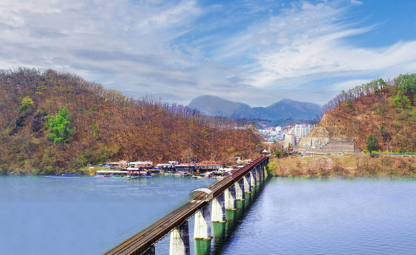 유유히 흐르는 북한강과 가평천을 가로지르는 30m 높이의 철교를 지나는 아찔한 색다른 경험도 할 수 있다.
